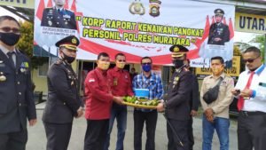 Upacara kenaikan pangkat atau korp raport yang juga bertepatan dengan momen HUT Bhayangkara ke – 74, dilaksanakan di halaman Polres Muratara, Rabu. (01/07/2020).