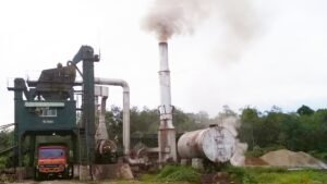 Selain kebisingan, berdasarkan pantauan di lapangan, saat sedang produksi aspal, banyak asap yang keluar dari mesin produksi tersebut.