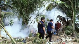 Selain pelayanan kesehatan langsung oleh tenaga medis, mereka juga melakukan fogging di wilayah terdampak sebagai upaya untuk mengantisipasi penyakit demam berdarah (DBD).