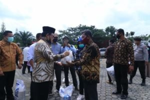 Bantuan untuk warga terdampak covid-19 itu dimulai dengan pembagian secara simbolis oleh Bupati Muratara H Syarif Hidayat, Jum’at. (24/07/2020) di halaman kantor Pemkab Muratara.