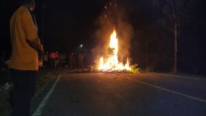 “Kami tidak sepakat dengan penutupan pesta malam,” ujar warga di lokasi blokade.