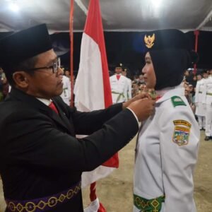 MURATARA – Wakil Bupati Musi Rawas Utara (Muratara), H. Inayatullah, memimpin langsung upacara pengukuhan Pasukan Pengibar Bendera Pusaka (Paskibraka) yang akan bertugas pada upacara peringatan Hari Ulang Tahun (HUT) ke-79 Republik Indonesia di Kabupaten Muratara. Upacara pengukuhan berlangsung khidmat di Aula Kantor Pemerintah Daerah Muratara dan dihadiri oleh jajaran Forkopimda, pelatih, serta keluarga anggota Paskibraka.